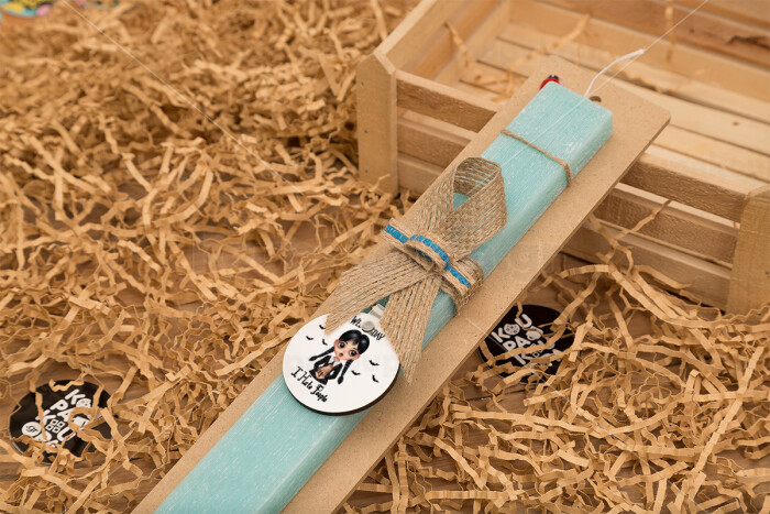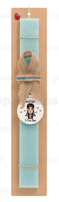 Wednesday Adams, i hate people, Πασχαλινή Λαμπάδα με ξύλινο μπρελόκ & κερί αρωματικό πλακέ (30cm) (ΤΙΡΚΟΥΑΖ)