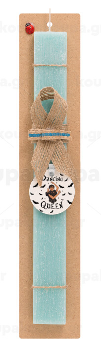 Wednesday Addams Dance, Πασχαλινή Λαμπάδα με ξύλινο μπρελόκ & κερί αρωματικό πλακέ (30cm) (ΤΙΡΚΟΥΑΖ)
