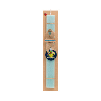 Πασχαλινή Λαμπάδα με ξύλινο μπρελόκ & κερί αρωματικό πλακέ (30cm) (ΤΙΡΚΟΥΑΖ) με θέμα Αθλητικά