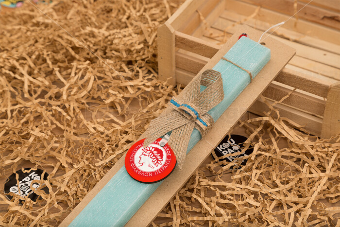 Ολυμπιακός, Πασχαλινή Λαμπάδα με ξύλινο μπρελόκ & κερί αρωματικό πλακέ (30cm) (ΤΙΡΚΟΥΑΖ)