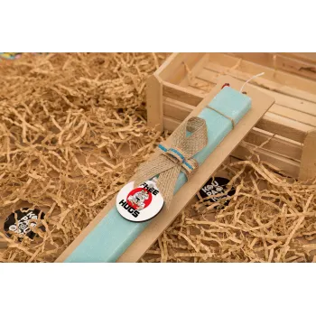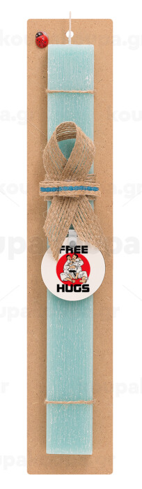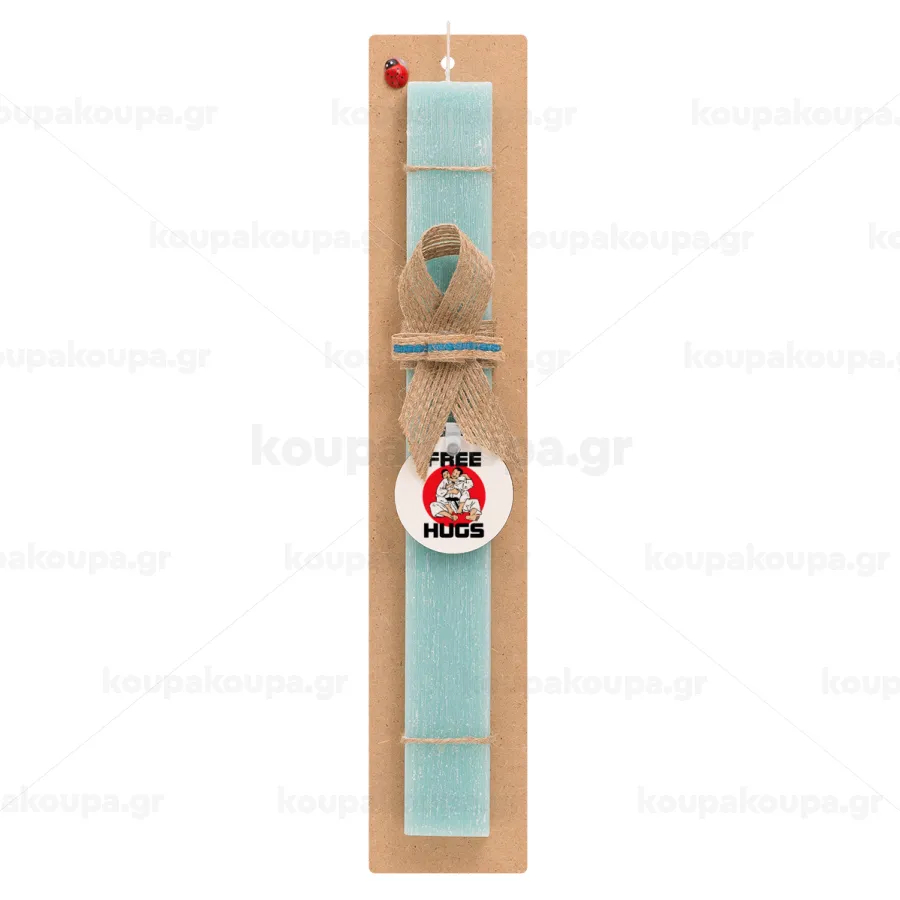 JUDO free hugs, Πασχαλινή Λαμπάδα με ξύλινο μπρελόκ & κερί αρωματικό πλακέ (30cm) (ΤΙΡΚΟΥΑΖ)
