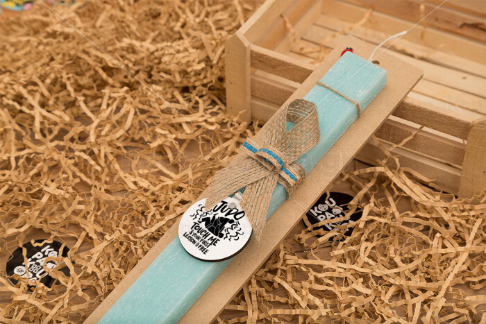 Judo Touch Me And Your First Lesson Is Free, Πασχαλινή Λαμπάδα με ξύλινο μπρελόκ & κερί αρωματικό πλακέ (30cm) (ΤΙΡΚΟΥΑΖ)