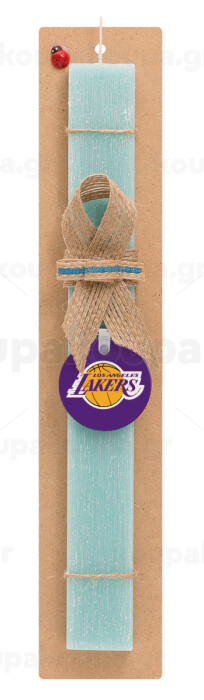 Lakers, Πασχαλινή Λαμπάδα με ξύλινο μπρελόκ & κερί αρωματικό πλακέ (30cm) (ΤΙΡΚΟΥΑΖ)