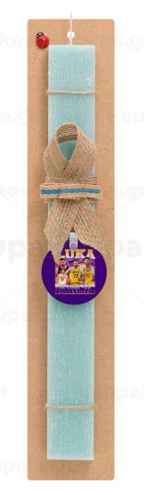 Luka Doncic Basketball , Πασχαλινή Λαμπάδα με ξύλινο μπρελόκ & κερί αρωματικό πλακέ (30cm) (ΤΙΡΚΟΥΑΖ)