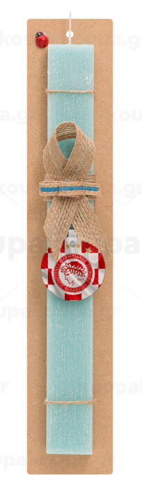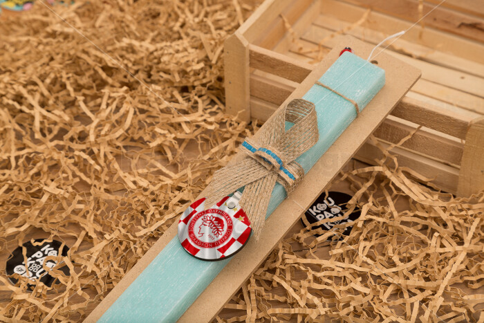 Olympiakos flag, Πασχαλινή Λαμπάδα με ξύλινο μπρελόκ & κερί αρωματικό πλακέ (30cm) (ΤΙΡΚΟΥΑΖ)