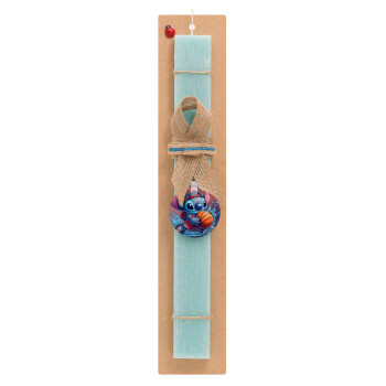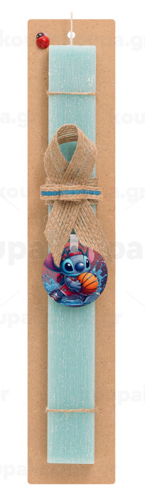 Stitch Basketball, Πασχαλινή Λαμπάδα με ξύλινο μπρελόκ & κερί αρωματικό πλακέ (30cm) (ΤΙΡΚΟΥΑΖ)