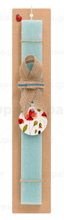 Red poppy flowers papaver, Πασχαλινή Λαμπάδα με ξύλινο μπρελόκ & κερί αρωματικό πλακέ (30cm) (ΤΙΡΚΟΥΑΖ)