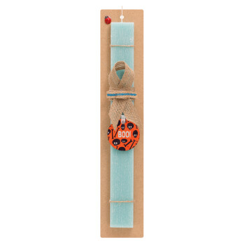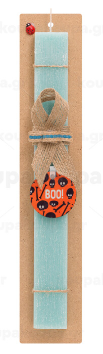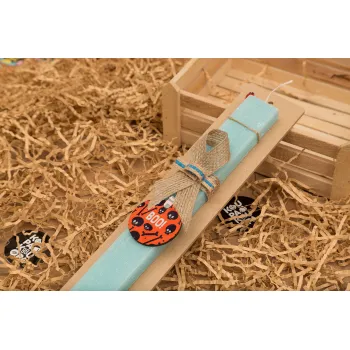 Halloween boo, Πασχαλινή Λαμπάδα με ξύλινο μπρελόκ & κερί αρωματικό πλακέ (30cm) (ΤΙΡΚΟΥΑΖ)