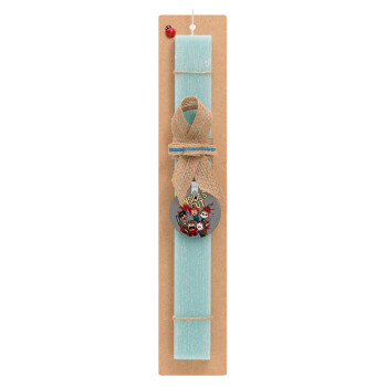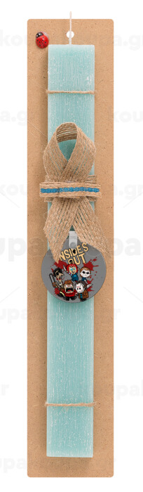 Halloween Inside out, Πασχαλινή Λαμπάδα με ξύλινο μπρελόκ & κερί αρωματικό πλακέ (30cm) (ΤΙΡΚΟΥΑΖ)