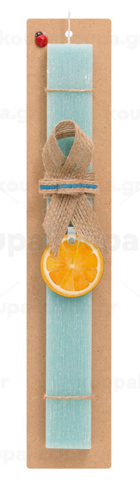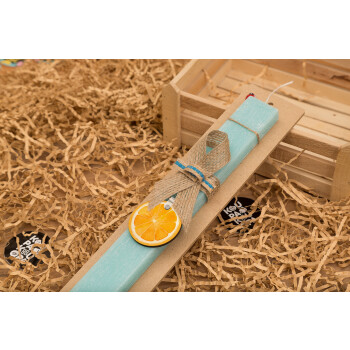 Πορτοκάλι, Πασχαλινή Λαμπάδα με ξύλινο μπρελόκ & κερί αρωματικό πλακέ (30cm) (ΤΙΡΚΟΥΑΖ)