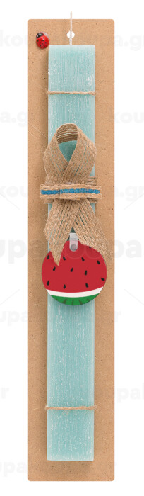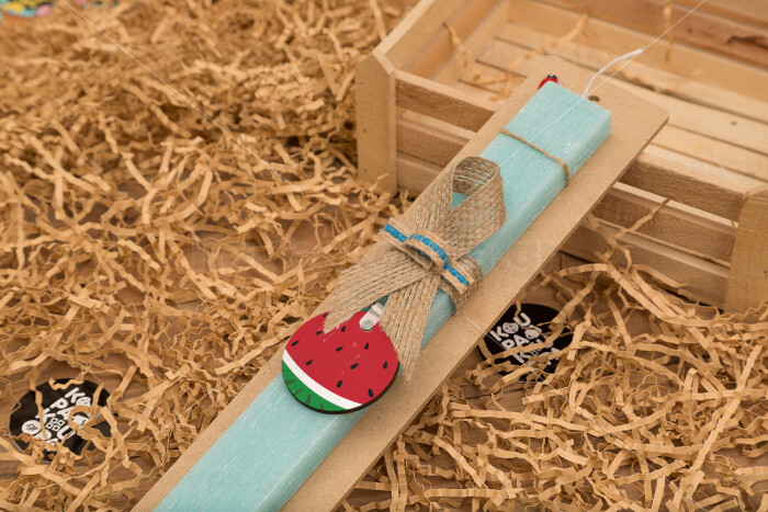 Καρπούζι, Πασχαλινή Λαμπάδα με ξύλινο μπρελόκ & κερί αρωματικό πλακέ (30cm) (ΤΙΡΚΟΥΑΖ)