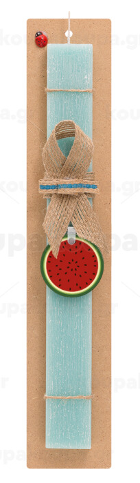 Καρπούζι, Πασχαλινή Λαμπάδα με ξύλινο μπρελόκ & κερί αρωματικό πλακέ (30cm) (ΤΙΡΚΟΥΑΖ)