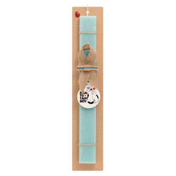 Είσαι το ταίρι μου, Πασχαλινή Λαμπάδα με ξύλινο μπρελόκ & κερί αρωματικό πλακέ (30cm) (ΤΙΡΚΟΥΑΖ)