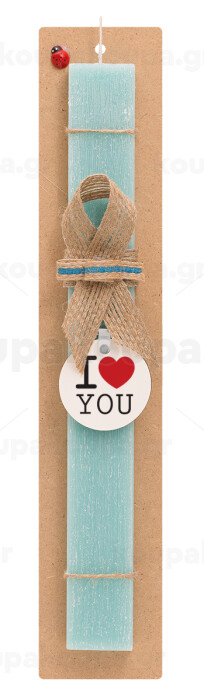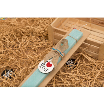 I Love you classic, Πασχαλινή Λαμπάδα με ξύλινο μπρελόκ & κερί αρωματικό πλακέ (30cm) (ΤΙΡΚΟΥΑΖ)
