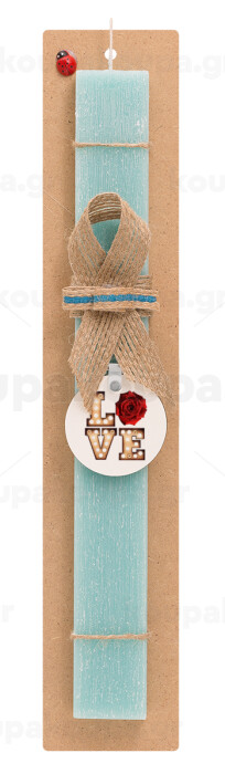 Love lights and roses, Πασχαλινή Λαμπάδα με ξύλινο μπρελόκ & κερί αρωματικό πλακέ (30cm) (ΤΙΡΚΟΥΑΖ)