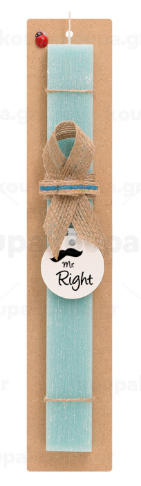 Mr right Mustache, Πασχαλινή Λαμπάδα με ξύλινο μπρελόκ & κερί αρωματικό πλακέ (30cm) (ΤΙΡΚΟΥΑΖ)
