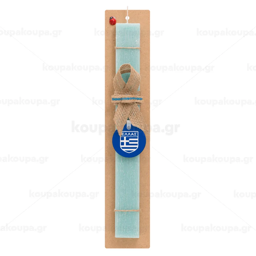 Ελλάς, Πασχαλινή Λαμπάδα με ξύλινο μπρελόκ & κερί αρωματικό πλακέ (30cm) (ΤΙΡΚΟΥΑΖ)