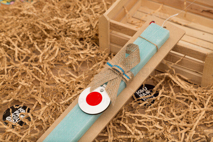 Japan flag, Πασχαλινή Λαμπάδα με ξύλινο μπρελόκ & κερί αρωματικό πλακέ (30cm) (ΤΙΡΚΟΥΑΖ)