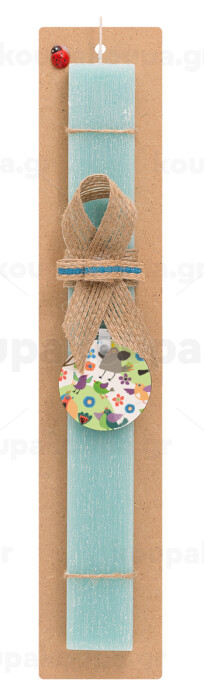 τα πουλάκια, Πασχαλινή Λαμπάδα με ξύλινο μπρελόκ & κερί αρωματικό πλακέ (30cm) (ΤΙΡΚΟΥΑΖ)