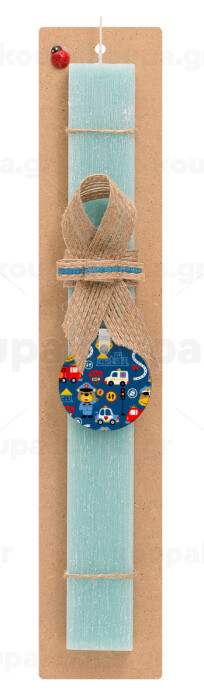 Rescue team cartoon, Πασχαλινή Λαμπάδα με ξύλινο μπρελόκ & κερί αρωματικό πλακέ (30cm) (ΤΙΡΚΟΥΑΖ)