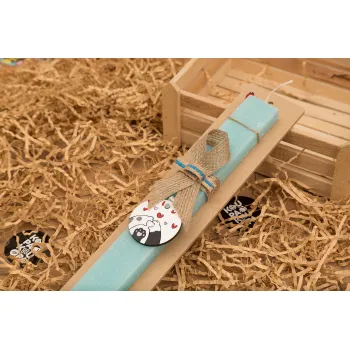 Πατούσες γάτας, Πασχαλινή Λαμπάδα με ξύλινο μπρελόκ & κερί αρωματικό πλακέ (30cm) (ΤΙΡΚΟΥΑΖ)