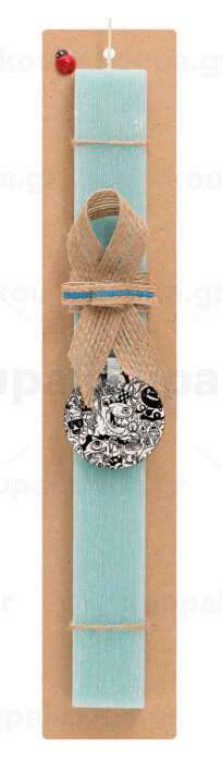 Τερατάκια, Πασχαλινή Λαμπάδα με ξύλινο μπρελόκ & κερί αρωματικό πλακέ (30cm) (ΤΙΡΚΟΥΑΖ)