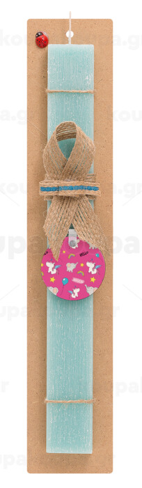 Happy Clouds Doodle, Πασχαλινή Λαμπάδα με ξύλινο μπρελόκ & κερί αρωματικό πλακέ (30cm) (ΤΙΡΚΟΥΑΖ)