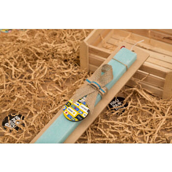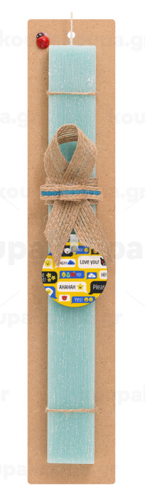 Emoji's text messages, Πασχαλινή Λαμπάδα με ξύλινο μπρελόκ & κερί αρωματικό πλακέ (30cm) (ΤΙΡΚΟΥΑΖ)