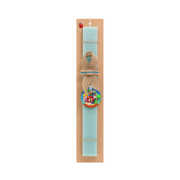 Πασχαλινή Λαμπάδα με ξύλινο μπρελόκ & κερί αρωματικό πλακέ (30cm) (ΤΙΡΚΟΥΑΖ) με θέμα Gaming