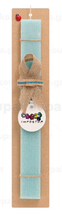 Among US impostor, Πασχαλινή Λαμπάδα με ξύλινο μπρελόκ & κερί αρωματικό πλακέ (30cm) (ΤΙΡΚΟΥΑΖ)
