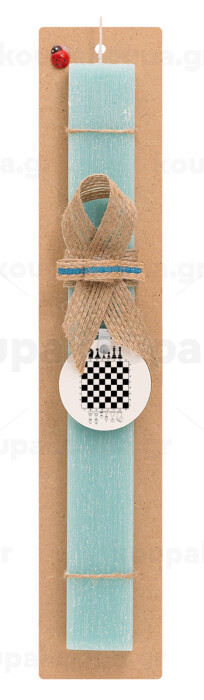 Σκάκι, Πασχαλινή Λαμπάδα με ξύλινο μπρελόκ & κερί αρωματικό πλακέ (30cm) (ΤΙΡΚΟΥΑΖ)
