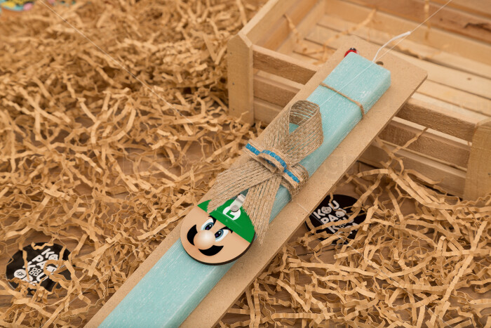 Luigi flat, Πασχαλινή Λαμπάδα με ξύλινο μπρελόκ & κερί αρωματικό πλακέ (30cm) (ΤΙΡΚΟΥΑΖ)