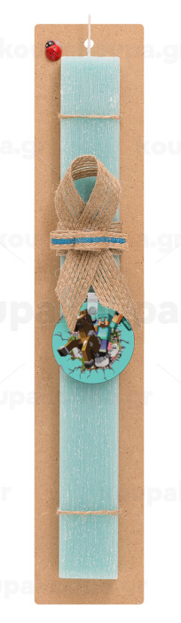 Minecraft brick, Πασχαλινή Λαμπάδα με ξύλινο μπρελόκ & κερί αρωματικό πλακέ (30cm) (ΤΙΡΚΟΥΑΖ)