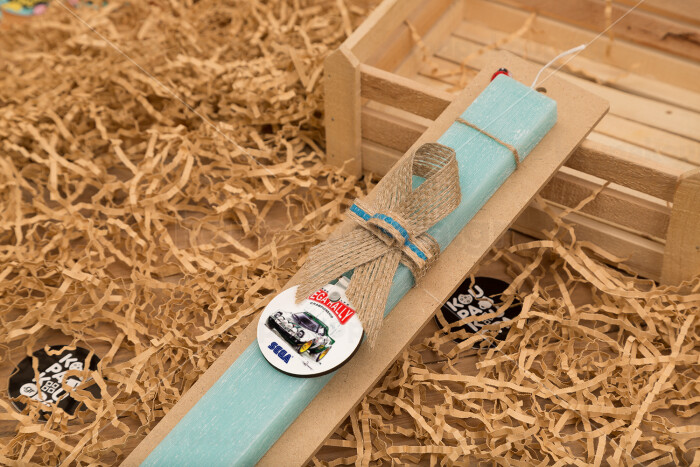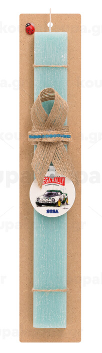 SEGA RALLY 2, Πασχαλινή Λαμπάδα με ξύλινο μπρελόκ & κερί αρωματικό πλακέ (30cm) (ΤΙΡΚΟΥΑΖ)