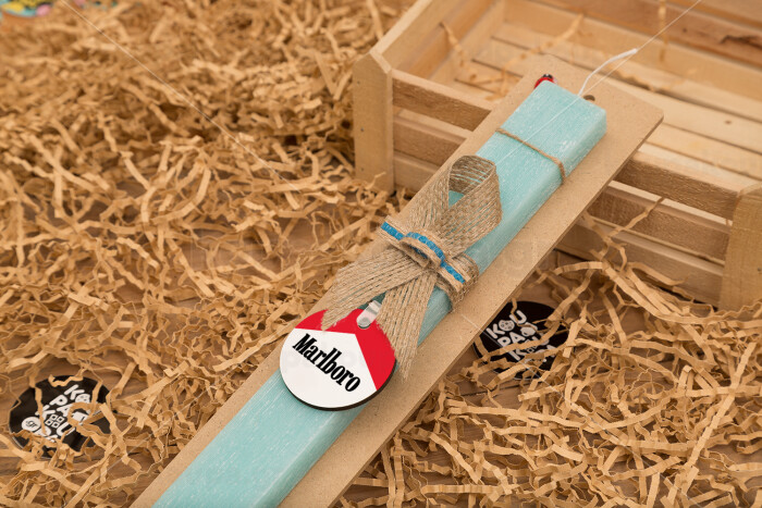 Marlboro, Πασχαλινή Λαμπάδα με ξύλινο μπρελόκ & κερί αρωματικό πλακέ (30cm) (ΤΙΡΚΟΥΑΖ)