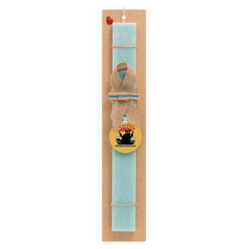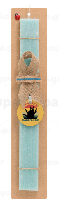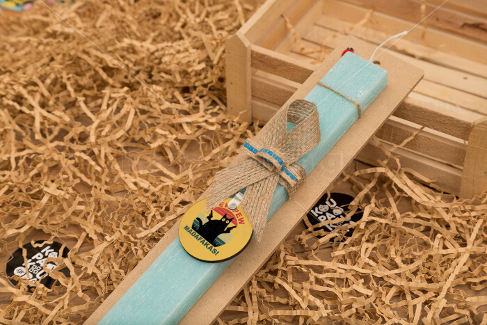 PEW PEW madafakas, Πασχαλινή Λαμπάδα με ξύλινο μπρελόκ & κερί αρωματικό πλακέ (30cm) (ΤΙΡΚΟΥΑΖ)