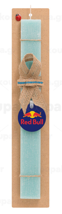 Redbull, Πασχαλινή Λαμπάδα με ξύλινο μπρελόκ & κερί αρωματικό πλακέ (30cm) (ΤΙΡΚΟΥΑΖ)