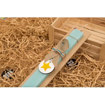 Star, Πασχαλινή Λαμπάδα με ξύλινο μπρελόκ & κερί αρωματικό πλακέ (30cm) (ΤΙΡΚΟΥΑΖ)