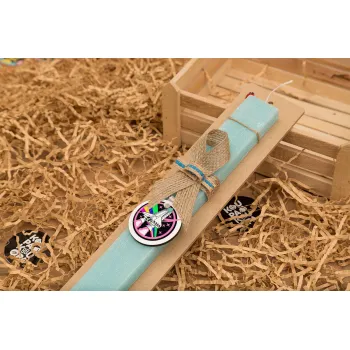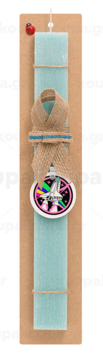 NASA pink, Πασχαλινή Λαμπάδα με ξύλινο μπρελόκ & κερί αρωματικό πλακέ (30cm) (ΤΙΡΚΟΥΑΖ)