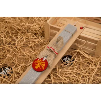 Βυζαντινή αυτοκρατορία, Πασχαλινή Λαμπάδα με ξύλινο μπρελόκ & κερί αρωματικό πλακέ (30cm) (ΓΚΡΙ)