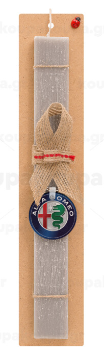 Alfa Romeo, Πασχαλινή Λαμπάδα με ξύλινο μπρελόκ & κερί αρωματικό πλακέ (30cm) (ΓΚΡΙ)