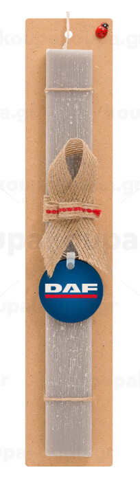 DAF, Πασχαλινή Λαμπάδα με ξύλινο μπρελόκ & κερί αρωματικό πλακέ (30cm) (ΓΚΡΙ)