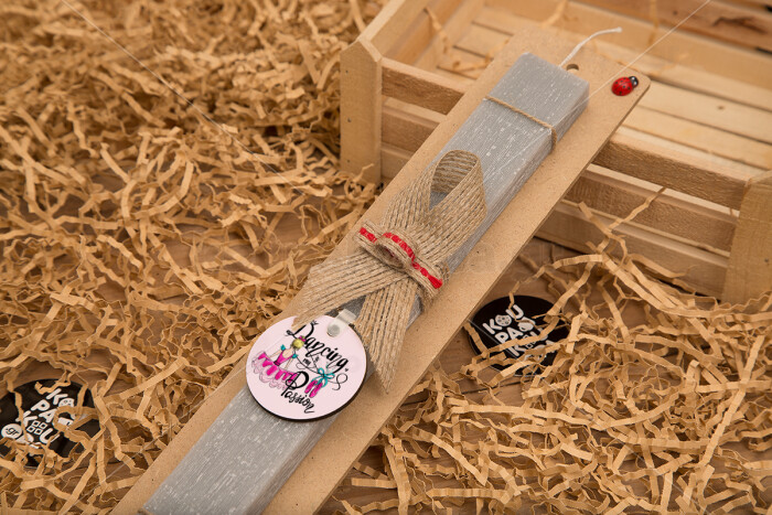 Dancing is my Passion, Πασχαλινή Λαμπάδα με ξύλινο μπρελόκ & κερί αρωματικό πλακέ (30cm) (ΓΚΡΙ)