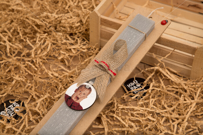 Μόνος στο σπίτι Kevin McCallister Shocked, Πασχαλινή Λαμπάδα με ξύλινο μπρελόκ & κερί αρωματικό πλακέ (30cm) (ΓΚΡΙ)
