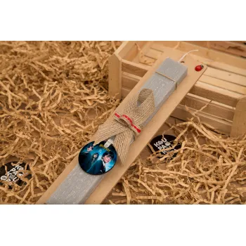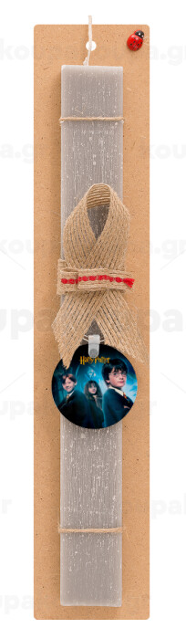 Harry potter and the philosopher's stone, Πασχαλινή Λαμπάδα με ξύλινο μπρελόκ & κερί αρωματικό πλακέ (30cm) (ΓΚΡΙ)