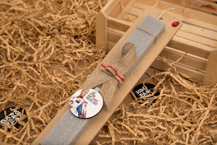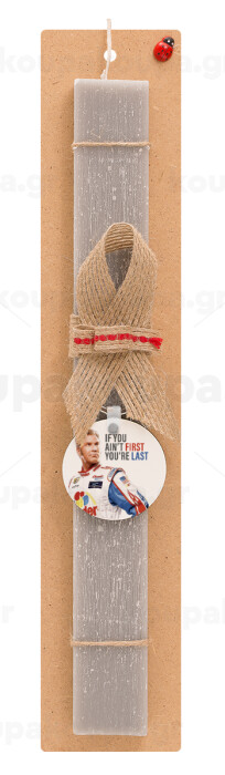 If You Ain't First You're Last Ricky Bobby, Talladega Nights, Πασχαλινή Λαμπάδα με ξύλινο μπρελόκ & κερί αρωματικό πλακέ (30cm) (ΓΚΡΙ)