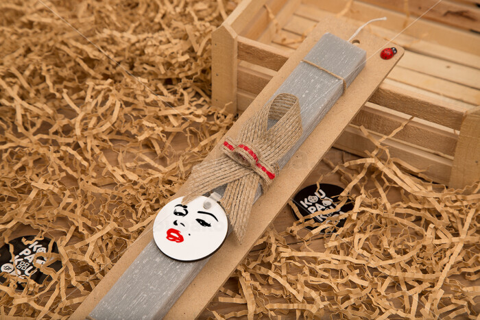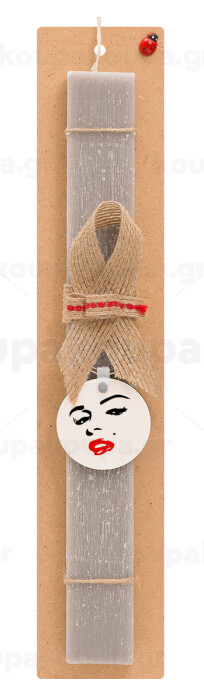 Marilyn Monroe, Πασχαλινή Λαμπάδα με ξύλινο μπρελόκ & κερί αρωματικό πλακέ (30cm) (ΓΚΡΙ)