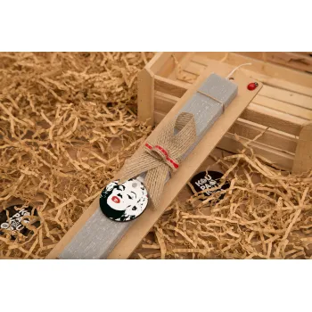 Merilin, Πασχαλινή Λαμπάδα με ξύλινο μπρελόκ & κερί αρωματικό πλακέ (30cm) (ΓΚΡΙ)