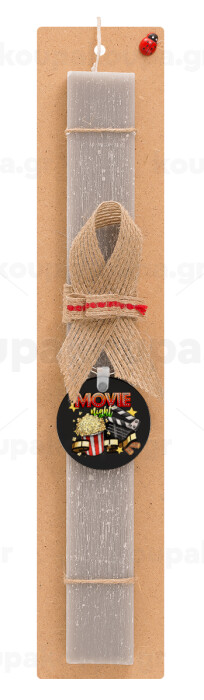 Movie night, Πασχαλινή Λαμπάδα με ξύλινο μπρελόκ & κερί αρωματικό πλακέ (30cm) (ΓΚΡΙ)