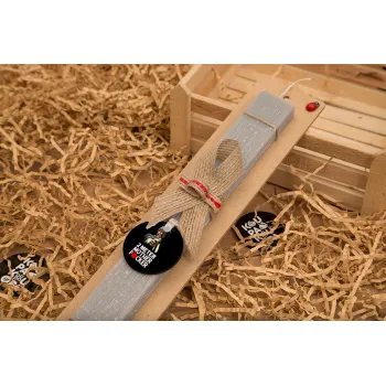 Pulp Fiction 2 meter mother f...r, Πασχαλινή Λαμπάδα με ξύλινο μπρελόκ & κερί αρωματικό πλακέ (30cm) (ΓΚΡΙ)